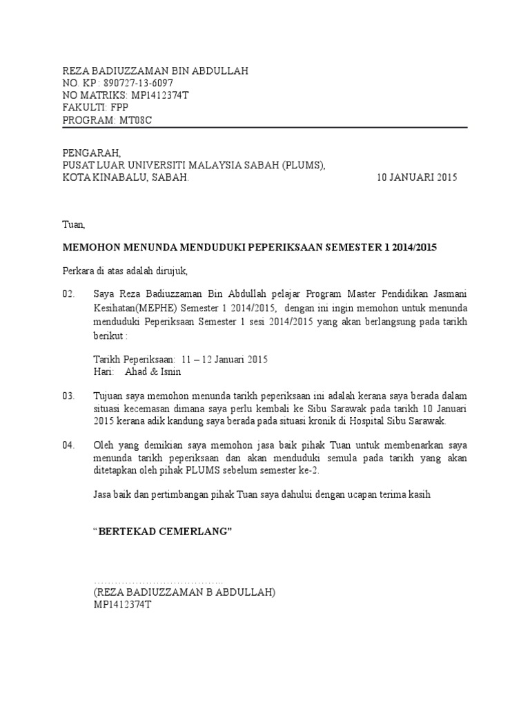 Surat Penangguhan Lapor Diri Pdf Kimaku