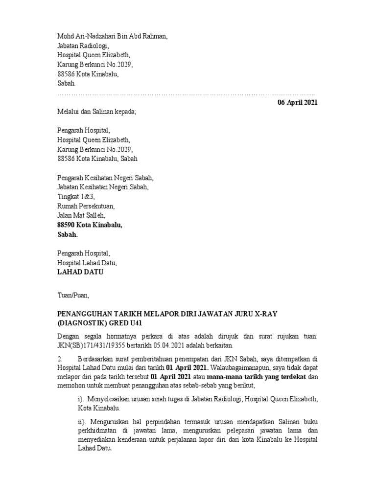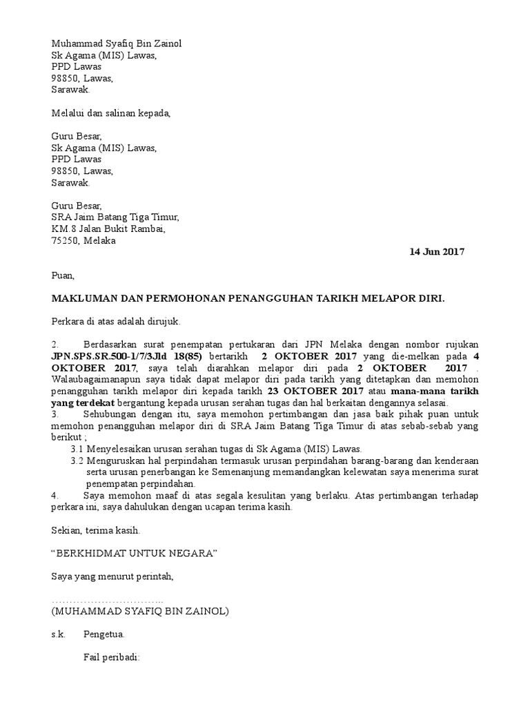 The Basil Satryo Contoh Surat Penangguhan Bertugas Ditempat Baru Surat Rasmi Rayuan Masuk Sekolah Terengganu N 8 4 Alamat Penuh Tempat Bertugas
